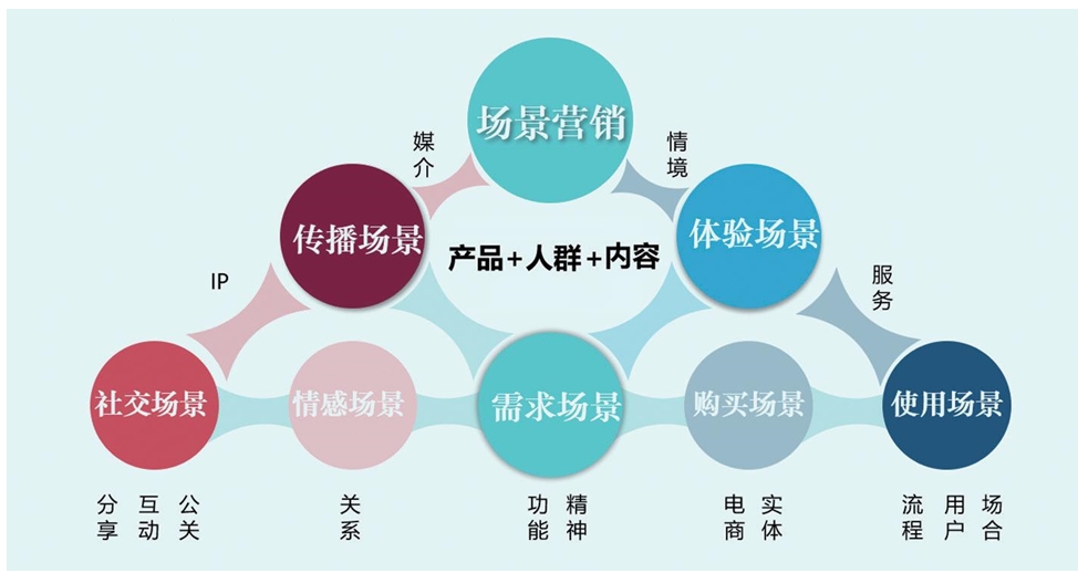品牌是感受价值,营销是创造感受。营销与感受之间的介质,就是场景。场景营销不是一个方法论,而是一个营销体系。 梁宁在《真需求》这本书中一言概之:“世界不是由生意组成的,是由生命组成的。”一句话,道出了商业的底层逻辑:创造可以被生命感知的利益。 那么,从哪里感知? 场景。 我们说,场景是唯一能够把产品、用户和需求结合在一起的一个概念。 什么是场景营销? 无论是对于品牌界还是对于产品界,场景都是一个大家早已熟知的概念。场景营销这个理念提出很多年了,在当下仍有争议:说它有用,大家也无法确认究竟是品牌自身的能量,还是由于场景的赋能;说它是未来的增量,很多正做这类营销的品牌仍然身陷泥潭,看不见曙光。 所以,我觉得首先是清晰界定。 营销是无法追求确定性的,场景营销不是一个确定的方法论,而是一个营销体系。在这个体系中,我们只有认清场景营销的构成,才能根据产品或品牌的独特性,选择适配的场景营销方法。 哲学是认知世界的方式,而理论,则是对现实的重新归类。 如果对场景营销有一个清晰的归类,那么大家对它的争议和理解,也会相对清晰明了。 在我的定义里,场景营销是为产品找到需求场景,需求场景里有真正的用户群,围绕“产品、人群”进行一系列营销动作:传播场景、社交场景、情感场景、体验场景、购买场景、使用场景。其中“需求场景+传播场景+体验场景”组成了核心的场景三角(如图1所示)。 品牌在做场景营销时,通过这张图,就可以清晰地判断自己的动作处于哪个场景中,应该规划什么样的内容,对应什么样的目标。有步骤、有目标去落地,才会取得相应的效果。