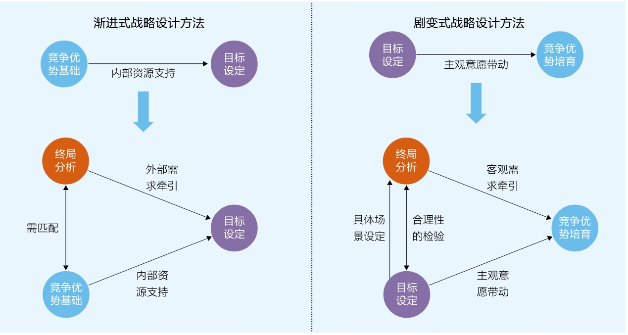 终局战略,既是不确定时代中长期主义者的重要制胜法宝,也是亟待解决的企业战略命题。 近期,随着 DeepSeek在大语言模型领域后来居上的优秀表现,针对百度的讨论逐渐增多。从战略的前瞻性看,百度对技术和产品的布局无疑是领先的,无论是生成式 AI(人工智能),还是自动驾驶,它几乎总能押中科技前沿,但在随后的发展中却不尽如人意。仅靠战略的前瞻性,不足以建立持续的竞争优势,辅以以终为始的终局思维,或许才能为企业带来更持久的竞争优势。 终局概念越来越多地被企业家们提及,并成为商业领域的热点词汇。一方面,对于终局的探讨为分析商业事件提供了有效的切入视角。英伟达2024年的业绩大爆发被归因于其在十几年前就针对 GPU(中央处理器)行业的终局制订了有效的战略,同时也有人认为未来 GPU产业终局中的非垄断竞争结构决定了英伟达的市场份额必将下滑。另一方面,在不确定的经济形势下,经营者们更渴望能看清所属赛道的未来趋势,以提前布局占据先机。因此,对终局的分析也越发重要。 其实,终局并非一个新的概念,它是战略设计的重要内容,“竞争战略之父”迈克尔·波特和北京大学光华管理学院教授刘学等学者对该主题都有一定研究。对终局的精准判断,能为企业经营策略的动态优化提供关键指引。例如,网龙公司预料接口型平台必将被替代,故提前将91助手出售给百度,预先规避了苹果和安卓自营 App商城带来的冲击。 终局概念再度成为热点,其内在原因是经营者们希望能放眼未来,在当下的迷雾中寻找可靠的成功之道,这也就必须追问一系列关键问题:什么是终局?终局分析包括哪些要素?如何设计终局战略? 为何要探讨终局? 多种原因共同决定了终局是一个极具价值的战略话题。 对终局的研究是企业战略设计的一个重要环节。随着现代管理理论的深入发展,企业发展已从自然演进模式转向战略演进模式。在此背景下,通过有设计的方式去推动某种规律性的呈现,成为战略设计的重要内涵。讨论终局的目的在于回应“什么是好战略,什么是坏战略”的问题,进而提供一个参考要素。如果战略设计能够符合终局的规律,那么它更可能成为一个好战略。 从战略理论来看,对终局的探讨能够让现有的战略设计方法趋于完善。目前主流的战略设计方法包括渐进式和剧变式两种: 渐进式的战略设计源自学习学派,主张先看起点再看目标,即基于企业的竞争优势去寻找适合企业的目标市场。 剧变式战略设计则源自结构学派,主张先看目标再看起点,即在选择目标市场后依据其特征来针对性地培养竞争优势。 在这两种方法中目标选择都被赋予了重要地位,但未来之中还存在一些比目标更加长远的要素需要被关注,这些要素对于判断战略目标是否正确有着重要意义,终局就是其中之一。