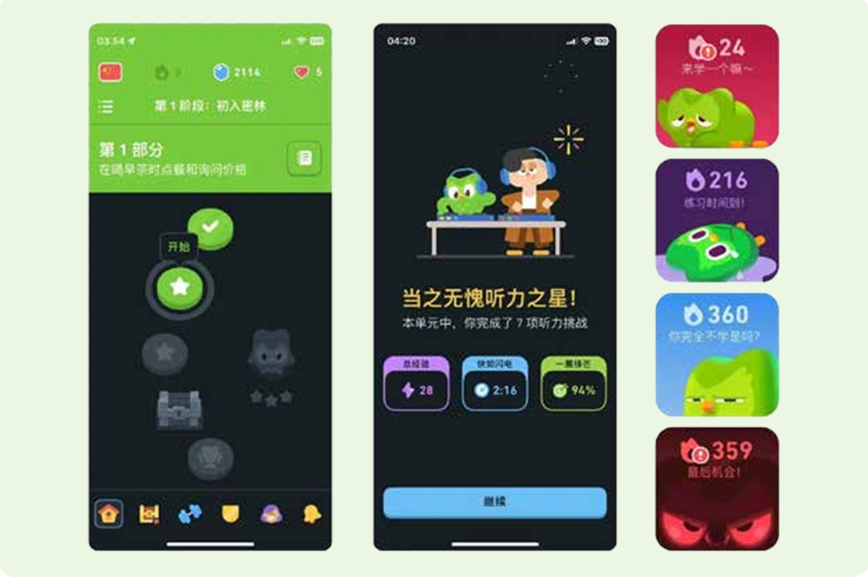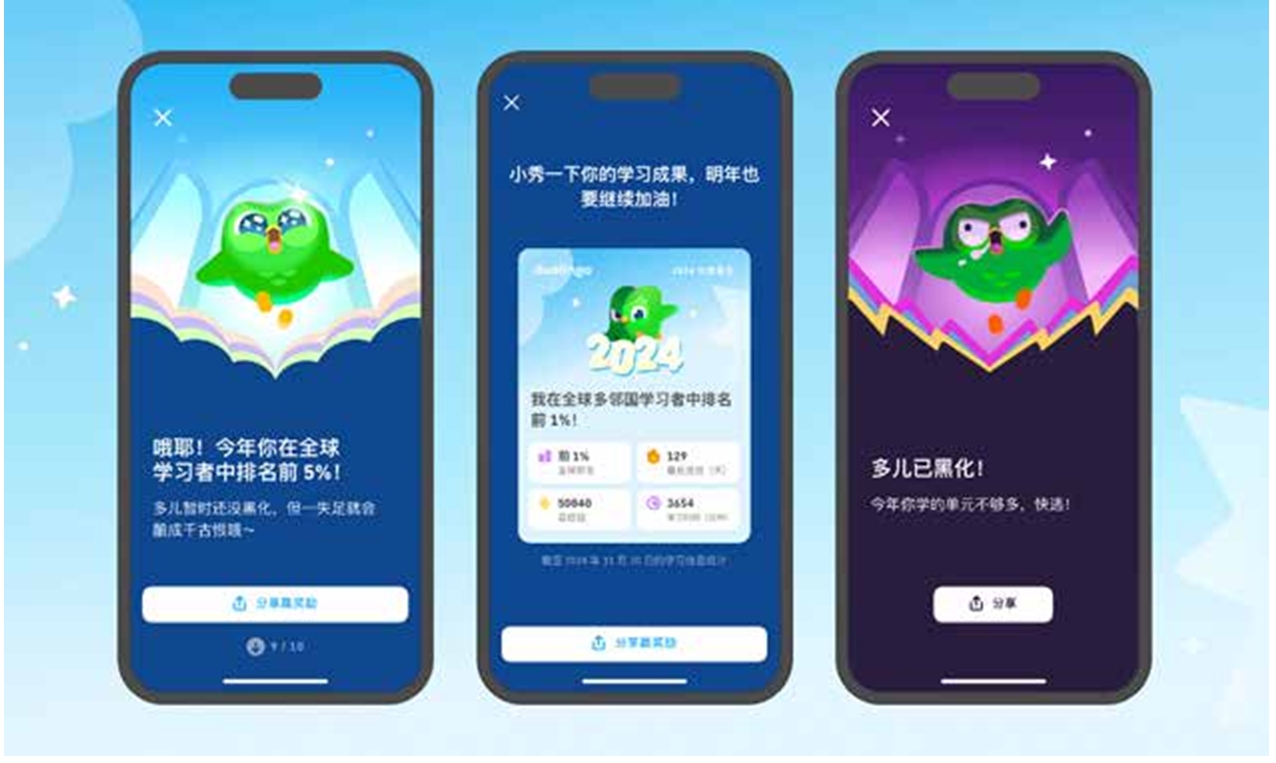 绿色猫头鹰“多儿(Duo)”如何硬控1亿用户? 在线语言学习是数字化教育的关键组成部分,GM Insights提供的数据显示,2023年全球语言学习市场规模达615亿美元,其中数字语言学习约占38%,且呈持续上升趋势。全球市场变化和互联网技术发展给大众生活方式带来深刻影响的同时,也推动了在线语言学习需求的进一步增长。在此背景下,2011年诞生于美国的多邻国(duolingo)成为近10年来最耀眼的行业新星。2018—2023年,多邻国年均复合增长率达71.3%,成为唯一一款被 App Store评为“年度最佳 App”的教育类应用,入选2020年CNBC(美国消费者新闻与商业频道)“颠覆式创新公司50强”榜单。2023年,多邻国年收入突破5亿美元,占据全球在线语言学习 App市场60%的使用份额,全球下载量突破5亿次。 目前,多邻国已经成为中国年轻群体讨论度最高的自主语言学习应用。后来者多邻国如何在群雄逐鹿的数字语言学习市场实现高速增长?其创新策略与实践经验对于正在探索数字化教育转型和国际化道路的中国学习品牌而言,又具有什么样的启示意义与参考价值? 年轻化定位助力错位发展 面对产品与服务高度同质化的市场现状,多邻国凭借差异化定位,巧妙避免了与 Rosetta Stone、Babbel等拥有丰富经验和资源优势的品牌展开正面冲突。通过错位竞争策略精准圈定用户群体、拓宽市场,多邻国成功开拓了独特的市场空间。 在线语言学习领域,多数平台往往忽视了对用户群体的精准细分,使得平台在学习路径与内容设计上缺乏针对性,从而削弱品牌竞争力。而多邻国精准抓住了年轻群体对在线语言学习不断增长的庞大需求,从创立之初就将年轻化作为其品牌的核心定位。据官方统计,多邻国在中国市场的用户主体集中在18至35岁,该年龄段不仅涵盖了广泛的学生群体,还吸引了大量有语言提升需求的上班族。 基于年轻用户群体追求个性化、便捷性和性价比的消费特征,多邻国采用了免费增值模式,即提供基础的免费语言学习课程,通过用户订阅和广告等增值服务实现盈利。用户可以免费学习多邻国提供的全部语言课程,但如果想要获得更高级别的学习体验或者享受无广告的平台服务,则需要支付一定的费用。这种模式大大降低了用户的学习门槛,使得更多人能够轻松接触到高质量的语言学习资源,多邻国的这一策略在用户群体中形成了良好的口碑和传播效应。 通过提供免费课程,多邻国成功培养了用户的使用习惯,进而促使更多用户为享受更优质的学习体验选择为增值服务付费。截至2024年第二季度,多邻国全球月活跃用户量已超1亿,季度内付费用户数达到800万,实现营收1.78亿美元,同比增长41%;调整后的 EBITDA(未计利息、税项、折旧及摊销前的利润)为4810万美元,同比增长130%。免费增值模式为多邻国的长期发展奠定了基础。 技术创新实现趣味学习 具有竞争力的产品是企业长久发展的关键。多邻国不断对产品进行创新与升级,在学习内容、学习形式及技术应用等方面取得了显著成果,为平台的持续发展和增强用户黏性构建了稳固的支撑。 1.智能技术打造个性化体验 多邻国在前沿技术与教育产品的融合方面进行探索,进一步提升用户的学习体验。通过智能分析用户的学习数据,多邻国能够更及时掌握用户的学习需求和痛点,从而提供更加精准和高效的解决方案。