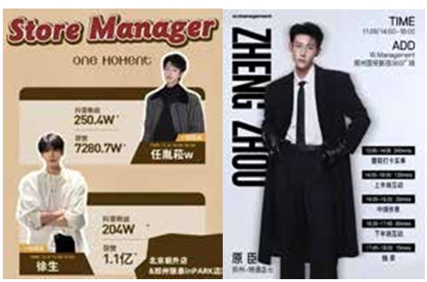 在仓储式服饰集合店,没有传统零售店中导购员的束缚,消费者可以完全按照自己的喜好和风格,自主挑选心仪的服装和配饰。无论是简约的通勤装、时尚的休闲装,还是充满个性的潮流单品,消费者都能在这里找到满意的答案。在自主搭配的过程中,消费者可以尽情地释放自己的个性,不必拘泥于传统的穿搭规则,也不必担心与他人撞衫。消费者还可以根据自己的身材、肤色、气质等因素,自由组合不同的服装和配饰,打造出独一无二的时尚造型。这种自主挑选、自由搭配的购物方式,让消费者在追求时尚的同时,也能感受到更多的自在和乐趣。 聚焦曝光:“一日店长”,明星引爆话题 “一日店长”,引爆营销话题。BF利用明星、网红造势,消费者可以在店里偶遇李一桐、关晓彤等明星。WM在此基础上升级玩法,明星、网红被邀请进店作为品牌店铺的“一日店长”,亲自参与店铺的运营和管理工作,与消费者进行面对面的互动和交流。一方面,“店长”的粉丝群体庞大,为 WM品牌带来了大量的关注。WM借助明星、网红的影响力,以具身角度与粉丝、消费者建立更紧密的品牌联系,将品牌文化和产品特点传递给更广泛的受众。另一方面,“店长”的话题流量,为 WM品牌带来了销售业绩的提升。WM利用明星光环、网红效应,增加了品牌曝光和口碑传播,提升了知名度和美誉度,直接促进了销售业绩的增长。