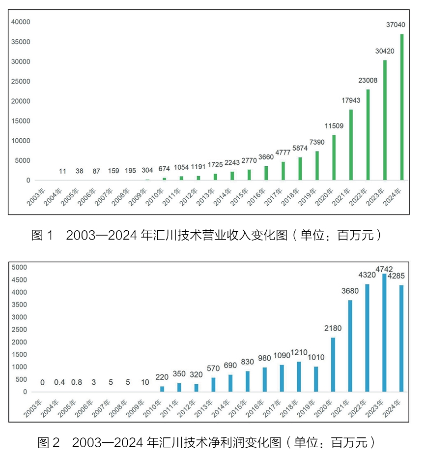 一段属于汇川技术的传奇篇章,一部中国企业砥砺奋进的辉煌史诗。 编者按 工业强国的每一次产业跃迁,都镌刻着本土工控巨头的成长印记。德国以西门子擎起精密制造大旗,日本凭发那科、安川构筑机器人帝国,而在中国工业 4.0的星辰大海中,汇川技术正以创新引擎驱动智造未来。 2000年,当全球通信产业深陷互联网泡沫余波时,华为在 CDMA(码分多址)项目招标落选与错失小灵通市场的双重夹击下,遭遇创立以来最严峻的生存危机。为了在困境中求生存,华为将旗下电气业务以7.5亿美元的价格出售给美国艾默生电气。彼时,中国制造正从模仿制造向自主制造跃升,本土零部件厂商有着广阔的市场前景。2003年,原华为电气事业部核心成员组建了汇川技术,他们带着华为基因所赋予的技术执念与市场嗅觉,在深圳悄然启航。 历经22年的发展,汇川技术从脱胎于华为体系的变频器厂商,成长为国内工控自动化领域的绝对龙头。如今,汇川技术稳居国内工业自动化行业第一,旗下2款产品占据全球市场份额榜首,4款产品位列国内细分领域第一,多款产品跻身行业前列。2025年4月,汇川技术市值达1620亿元,创始人、董事长兼总裁朱兴明连续4 年荣登福布斯中国最佳 CEO榜单。 汇川技术的成长历程不仅勾勒出中国工业自动化产业的崛起轨迹,更印证了其战略远见、营销模式创新与技术深耕的厚重商业价值。 中国工业品企业的榜样 自2004年至2024年,汇川技术的财务表现极为亮眼,它以持续的高增长和稳健强劲的盈利能力备受行业瞩目,实现了堪称奇迹的跨越式发展。公司营业收入从最初的1100万元经过20载淬炼飙升至370.40亿元,实现了3300多倍的增长,年复合增长率高达 41.7%(见图1)。这些数据生动地勾勒出汇川技术持续扩张的强劲动能。 汇川技术盈利能力的提升同样呈现出令人惊叹的轨迹,其利润曲线与营业收入增长曲线构成完美双螺旋,从创业初期40万元的微薄利润,到2024年斩获 42.85亿元的净利润,增幅突破了万倍大关(见图2)。其净利润的增长与营业收入的增长相互呼应,形成了良性发展的循环态势,彰显出汇川技术在成本控制与规模效应之间的卓越平衡能力。 资本市场对汇川技术的价值认可度极高,这一表现极为显著。2025年4月,汇川技术市值高达1620亿元,相较于2010年上市时的初始市值增长26倍。有关投资机构测算,如果在2010年汇川技术 IPO(首次公开募股)时投入10万元购买其股票,到2024年,分红加上股价升值的收益合计高达188万元,年化收益率为23.2%。这一收益率即使是与消费股龙头贵州茅台相比也毫不逊色——同期贵州茅台的年复合收益率为22.4%,总回报为170万元,略低于汇川技术。这一对比,进一步凸显了汇川技术在成长股领域的标杆地位和巨大的投资价值。