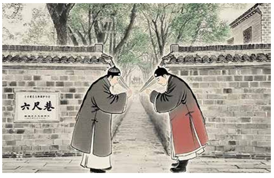 “一纸书来只为墙,让他三尺又何妨?” 中华优秀传统文化中的“礼”,远不止于繁复的仪式或规范,它更是一种深植于民族精神的处世哲学。孔子曰“不学礼,无以立”,深刻揭示了“礼”的双重价值:既是维系社会秩序的基石,亦是处理人际关系的智慧。“礼”并非僵化的教条,而是流淌在文化血脉中的柔性力量,在解决冲突、构建和谐中始终发挥着不可替代的作用。六尺巷的典故,正是这种力量的生动注脚。 六尺巷:化解矛盾的和谐智慧 在安徽桐城西南,一条长百米、宽两米的寻常巷陌,因一则始于康熙年间的佳话而闻名遐迩,这便是六尺巷的由来。 据传,清代康熙年间,大学士张英的家人因与邻里的宅基地纠纷修书求助张英。彼时张英身居高位,若想以势压人易如反掌,但他并未如此,而是回诗一首:“一纸书来只为墙,让他三尺又何妨?长城万里今犹在,不见当年秦始皇。”家人见信,深受触动,意识到争执的短视,主动退让三尺。邻里感其大度,亦被这份豁达打动,同样退让三尺,遂成这条传颂至今的六尺巷。