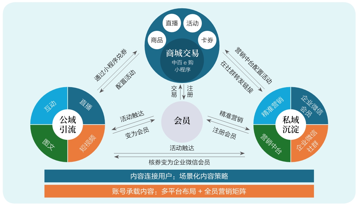 图1 佳乐家超市的增长闭环 抖音拥有庞大的用户基数和成熟的电商生态,佳乐家超市将其定位为核心平台,通过短视频、直播等形式,增加曝光,锁客引流,转换会员。视频号是依托微信生态的短视频和直播平台,佳乐家超市将其打造为内容曝光增长第二极,主要是为企业微信社群提供场景化内容素材。小红书、快手是补充渠道,小红书侧重于深度种草、口碑宣传和互动,快手则侧重于县域客群活动信息的传递。 突破瓶颈:全员营销矩阵,释放协同势能 平台定位清晰后,下一步是建立账号、进行账号定位以及形成账号矩阵。过往依赖单一账号单打独斗的模式,在当下复杂多变的平台生态中已显疲态。为此,佳乐家超市摒弃单点突破的思维,构建了覆盖全域、角色互补的“品牌主账号+垂直品类号+门店号+KOL(关键意见领袖)号 +KOS(关键意见销售)号”的全员营销账号矩阵体系。 品牌主账号定位于品牌高度塑造与专业形象输出,聚焦核心商品深度解读、特色服务展示、大型活动宣发、场景化应用,内容比较专业、高质。垂直品类号专注于特定品类(如服饰、茶叶、百货、家电)的专业知识科普和商品深度种草,打造专业 IP形象,吸引精准兴趣人群。门店号重点突出各店独有的特色商品、限时优惠和门店活动,强化社区渗透力与用户亲近感。KOL号聚焦商品种草、活动曝光、直播带货,利用其公信力与粉丝基础,快速扩大品牌影响并直接促成转化。KOS号是门店店员围绕商品、服务、活动,创造更加真实、接地气的内容,是传播矩阵中不可或缺的“神经末梢”。 这套全员营销账号矩阵并非账号的简单堆砌,而是通过清晰的定位分工与合理的协同机制,实现从品牌号、品类号发起话题到门店号、KOL号、KOS号接力扩散,再到达人号引爆,形成强大的协同效应。2025年上半年,仅在抖音平台短视频总发布量就达8万余条,总播放量突破2亿次,全域流量池被激活。 内容革命:从“硬广告轰炸”到“场景共生” 内容是连接用户的核心,佳乐家超市的内容策略发生了重要转变:大幅减少纯促销广告片的制作比例,转而围绕用户真实生活场景和特别时间节点,自然融入商品、服务和活动信息,突出场景化内容的创作。 佳乐家超市围绕商品、服务、活动,重点打造3类高价值内容,并将零散内容按照主题进行集合管理,实现了内容类型多元化。“超市扫货秘籍”包含消费教育和好物推荐,提供实用的购物知识、挑选技巧、商品使用指南(如“如何挑选洗发水”);“小佳故事”主要传递服务理念、讲述员工故事、彰显社会责任,塑造有温度的超市形象(如“护航高考?潍百义工在行动”);“活动好精彩”则是介绍活动内容,并将商品融入其中(如“畅享暑假冰爽节”)。 这种生活化、场景化、价值化转型效果十分显著,用户停留时长、点赞评论率等互动指标明显提升。更重要的是,内容的“广告味”淡了,“人情味”和“实用价值”浓了,用户的信任感随之增强,为后续实现转化奠定了坚实的基础。 公私域联动:打通流量转化“任督二脉”,将流量转变为客流 获取流量只是第一步,实现高效转化并沉淀用户资产,将用户变为真正的客流才是关键。佳乐家超市的核心策略是深化公私域联动,打造“公域引流、私域沉淀、商城交易”体系。 1.公域引流 在抖音等平台,通过优质内容和精准投放吸引兴趣用户,目标是品牌推广、锁客引流、会员转化,当前操作的重点是抖音短视频挂载链接、直播间售卖商品。2025年上半年,抖音成交人数65万人,其中40万人到店消费并转化为会员,主要策略如下:一是制订详细的月度直播、短视频规划,按照规划组织货盘;二是实现抖音日播与月度大场直播相结合,不断提高直播的专业度与产出,直播 GMV(商品交易总额)达4000万元,日最高 GMV突破200万元;三是加强对员工内容创作能力的培养,建立完善的佣金及排名激励政策,实行单独建群管理,月度组织集中培训,专业人员产出占比高达51%;四是通过外部达人探店、短视频挂券、直播,增加活动的曝光,达人发布短视频超过1.2万条,播放量超过8000万次,达人单场直播 GMV突破35万元。 公域流量向私域客流转化是困扰商超营销工作开展的难点。佳乐家超市进行了技术对接,将抖音订单、会员系统、小程序的数据打通,在顾客到店使用抖音券时,系统自动将其转化为数字化会员。同时,收银环节会引导抖音顾客加入专属的企业微信社群,群里每天发布直播预告、爆品推荐等信息,真正实现公域到私域的引流与转化。 2.私域沉淀 佳乐家超市通过5年的积累,建立了拥有9000个企业微信社群、150万名企业微信会员、400万名数字化会员的私域池,门店设置电商专员岗位,对企业微信社群、企业微信会员进行精细化运营与精准营销。 关于企业微信社群的精细化运营,佳乐家超市以将企业微信社群打造成真正的沟通平台为目标,在社群拉新、促活、转化、复购方面投入资源。在拉新方面,设置进群送小礼品、企业微信社群专享商品、进群领券等活动,同时对门店设置企业微信社群拉新目标,按照季度进行考核。在促活与转化方面,主要是在社群里发送商品链接、场景化视频号素材,每月组织免费打卡日、免费抽奖日、宠粉直播等活动,设置活动专区,同时在社群内发布门店促销活动、回复顾客问题等,让社群会员不仅能买到质优价廉的商品,还能自觉成为回头客。 关于企业微信会