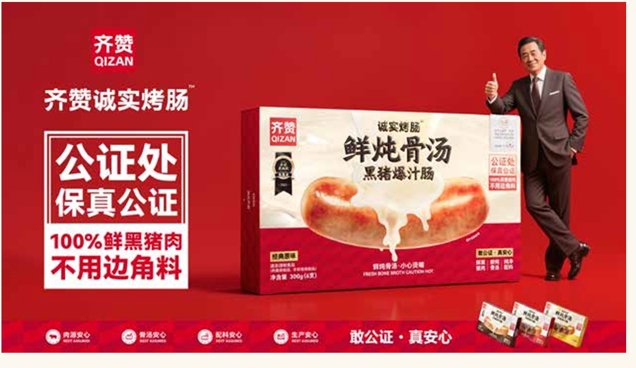 齐赞用25年时间完成了一场从规模竞争到价值竞争的蝶变。 编者按 25年,足够一个行业从混乱走向成熟,也足够一家企业从“幕后王者”走到台前破局。齐赞,一个累计售出超100亿支烤肠、年销售额超15亿元的肉制品巨头,一个服务了从五星酒店到连锁便利店、身影遍布却鲜为消费者所知的“隐形冠军”。2025年,它做出了一个惊动行业的决定:邀请公证处对其核心产品“诚实烤肠”进行从生猪屠宰到产品出库的全流程、全方位公证监督。 这并非一次简单的营销事件,而是一场生产者与消费者之间关于产品品质的信任盛典,更是一位行业巨擘的正式亮剑。齐赞的故事,是一场关于信任的长期主义实践:用 B端(企业端)积累的品控肌肉、供应链掌控力、规模底气,通过“公证”这把公信力钥匙,打开 C端(消费者端)的信任心门。它意味着,齐赞将其25年来的品质坚守,置于公证的法律监督之下,将“安心”二字,从一个动人的营销口号,淬炼成一份份可查阅、可核验的法律文书。 这既是一个企业的战略跃迁,更是一个行业从低价内卷走向品质觉醒的缩影——定义“安心烤肠”的新标准:不是“合规即可”,而是“透明可信”;不是“卖一支肠”,而是“守一个家的餐桌安全”。 在中国消费市场的浩荡图景中,肉制品赛道始终展现着巨大的活力与持续的演进。伴随着消费升级的浪潮,消费者对“品质”与“安心”的追求日益成为主导市场的核心力量,推动着整个产业向更透明、更高标准的方向发展。 在此背景下,齐赞集团——一个在肉制品 B端深耕25年、年销售额超15亿元的“隐形冠军”,其战略路径显得尤为清晰且耐人寻味。从为高端餐饮与零售巨头提供食材,到如今携“诚实烤肠”系列强势进入消费者视野,齐赞的每一步都并非偶然。 这背后,是一场基于深厚积累的“双轮驱动”战略的顺势展开。在 B端,齐赞已建立起覆盖全国2000多家实体店的渠道网络,其规模化品控、供应链效率与标准化产品,构成了企业稳健发展的压舱石。然而,市场的终局在于心智。齐赞意识到,要构建穿越周期的品牌壁垒,必须与最终消费者建立直接、稳固的信任连接。进军 C端,成为其夯实 B端优势、开启第二增长曲线的必然选择。 于是,2025年那个邀请公证处全程监督的惊动行业的决定,便显得顺理成章。这并非一场孤立的营销实验,而是齐赞将服务 B端客户时对标准化、稳定性、大规模品控的极致理解,向 C端消费体验的一次系统性转化。它将抽象的“安心”承诺,转化为一份法律保障,旨在以最严苛、最郑重的方式,回应消费者的关切。 齐赞的转型,因而超越了简单的渠道拓展。它是一次以 B端势能为根基、以信任构建为引擎、以实现品牌价值最大化为目标的战略升维。当这支承载着公证印记的烤肠从工厂走向家庭的餐桌时,齐赞书写的,不仅是一家企业的成长史,更是对中国食品品牌如何从“规模制胜”迈向“品质至上,信任为王”的一次深刻实践。 B端王者之路—在产业演进中构建系统竞争力 在中国肉制品行业从粗放走向精细的演进历程中,齐赞的崛起并非偶然。这家企业用25年时间在 B端市场构建了一套难以复制的系统能力,这套能力体系成为其日后进军 C端最坚实的“铁王座”。 价值锚定:以“肉含量”开启品质革命 回溯2009年前后的烤肠市场,正处于特定的发展阶段。“1元烤肠”在头部品牌的推动下快速普及,但行业整体仍停留在价格竞争层面。彼时,产品标准相对模糊,“淀粉肠”与“纯肉肠”的界限并不清晰,大量企业采用碎肉重组与复合配料来平衡成本与风味。 在这个关键节点,齐赞作出了影响深远的战略选择。基于对食品行业长远发展的思考,团队决定从原料端入手,尝试重新定义一支好肉肠。这一理念最终凝聚为具体的产品决策:率先在行业内明确标注产品肉含量。 当大多数同行仍在用“肉感十足”等感性词汇描述产品时,齐赞直接将“93%肉含量”作为清晰、可衡量的指标印在包装上。这一举动在当时的市场环境下颇具深意,它像一份郑重的品质承诺,主动接受市场的审视。 在猪肉价格平稳时期,坚持高肉含量意味着更高的原料成本。齐赞创始人张红亚后来回忆道:“那个时候,我们背负着高成本,但讲肉含量高,很多用户感觉意义不大。”然而,这种压力被他视为必要的投入。他相信,明确标注肉含量不仅是对产品信息的透明化,更是对企业诚信与初心的坚守。