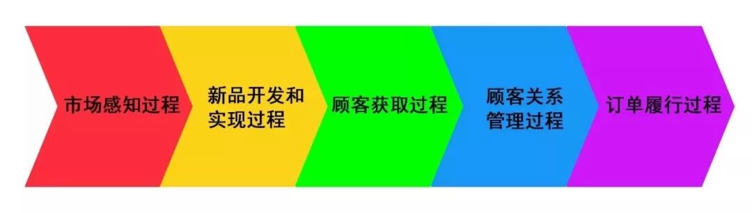 2、 全面引入了波特的“价值链”概念,除了原有的五个基本活动和四个支持活动,又整理出五个核心业务流程:市场感知过程、新品开发和实现过程、顾客获取过程、顾客关系管理过程、订单履行过程。