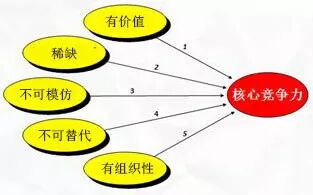 第五个关键词叫“核心竞争力”。它具备五个特征,有价值、稀缺、不可模仿、不可替代、有组织性。就像开头说的A老板,擅长“忽悠”,本是一项他的个人能力,一旦用公司资源把它推到前台,就成了公司的一项核心竞争力。