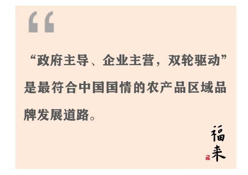 没有政府主导,产业像一盘散沙;没有企业主营,政府主导落不到实处。政府和企业各司其职,互为依托,发挥擅长,相互配合,缺一不可。“政府主导、企业主营,双轮驱动”是最符合中国国情的农产品区域品牌发展道路。