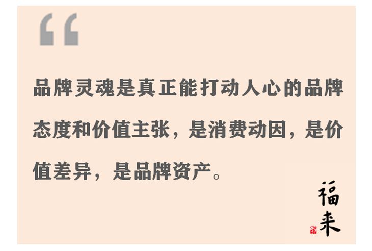 品牌的本质是“塑魂”,魂立则心动。没有灵魂的品牌,如行尸走肉,难以存活于心。品牌灵魂是真正能打动人心的品牌态度和价值主张,是消费动因、是价值差异、是品牌资产。