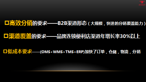 比同行和二批更好的终端客户体验,送货更快,品类更多,一站式送货,一站式解决门店的需求,通过电商平台,比传统客户更高效率的分销速度,数量,更快的库存周转率,商品周转率,更加精准的客户分销,提高了运营效率。通过wms系统,CTMS系统,我们解决了车辆,人力,仓储浪费,进一步降低了分销的运营成本。